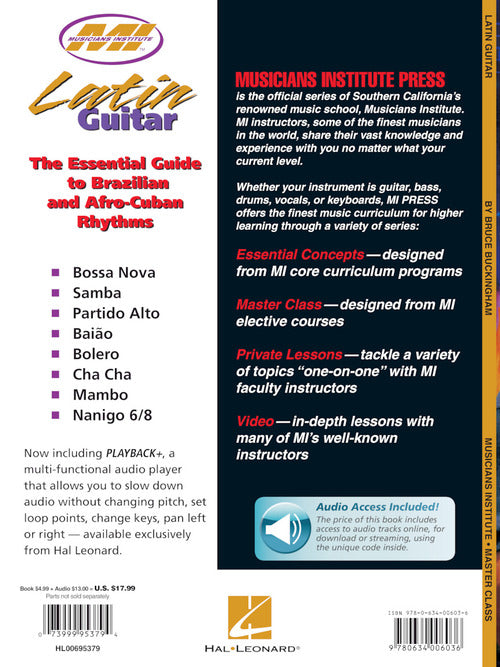 Composer: Bruce Buckingham Latin Guitar Master Class Series Publisher: Musicians Institute Press Category: Guitar, Bass & Fretted Series: Musicians Institute Press Format: Softcover Audio Online Guitar Tab: YES Pro musician and G.I.T. instructor Bruce Buckingham covers...Regular price $23.99 -