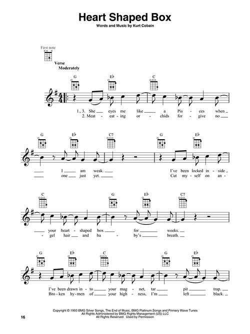 Artist: Nirvana Nirvana for Ukulele Softcover 20 songs to sing and strum on the uke from these iconic godfathers of grunge, Nirvana. Includes: About a Girl · All Apologies · Come As You Are · Dumb...Regular price $19.99 -