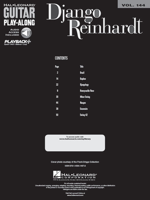 Django ReinhardtGuitar Play-Along Volume 144Publisher: Hal LeonardCategory: Guitar, Bass & FrettedSeries: Guitar Play-AlongFormat: Softcover Audio OnlineGuitar Tab: YESThe Guitar Play-Along Series will help you play your favorite songs quickly and easily! Just follow the tab, listen...Regular price $27.99 -