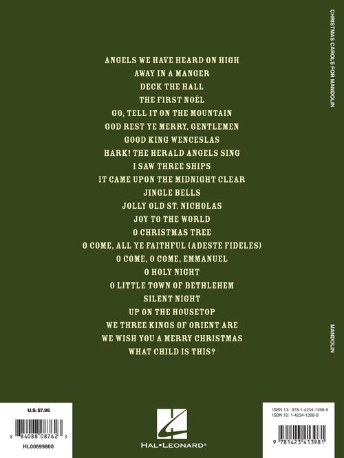 Composer: Various Christmas Carols for Mandolin Publisher: Hal Leonard Category: Guitar, Bass & Fretted Series: Mandolin Format: Softcover 23 Christmas songs arranged especially for mandolin, including: Away in a Manger · The First Noel · God...Regular price $13.99 -