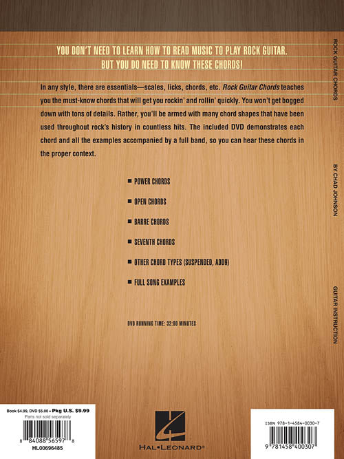 Author: Chad Johnson Rock Guitar Chords Learn the Essential Chords You Need to Start Playing Rock Now! Publisher: Hal Leonard Category: Guitar, Bass & Fretted Series: Guitar Educational Format: Softcover with DVD In any style, there...Regular price $15.99 -
