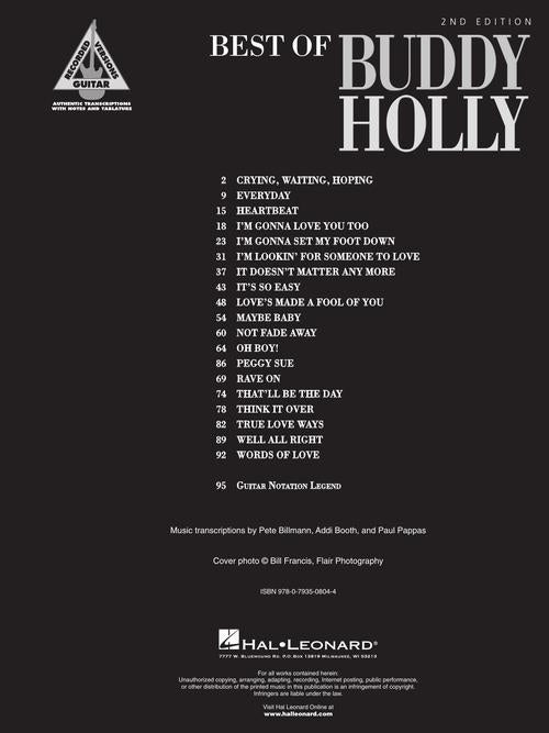 Best of Buddy Holly - 2nd Edition Publisher: Hal Leonard Category: Guitar, Bass & Fretted Series: Guitar Recorded Version Format: Softcover Guitar Tab: YES This new version has been given a complete facelift, with new songs...Regular price $32.99