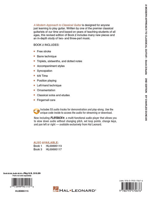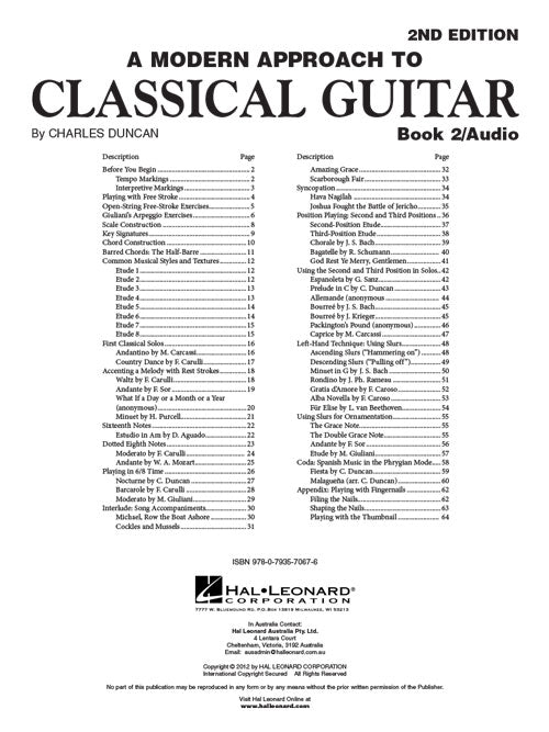 Author: Charles Duncan A Modern Approach to Classical Guitar - 2nd Edition Book 2 - Book with Online Audio Publisher: Hal Leonard Category: Guitar, Bass & Fretted Series: Guitar Format: Softcover Audio Online Now available with...Regular price $15.99 -