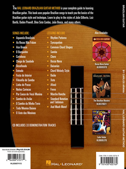 Author: Carlos Arana Hal Leonard Brazilian Guitar Method Learn to Play Brazilian Guitar with Step-by-Step Lessons and 17 Great Songs Publisher: Hal Leonard Category: Guitar, Bass & Fretted Series: Guitar Method Format: Softcover Audio Online Guitar...Regular price $23.99 -