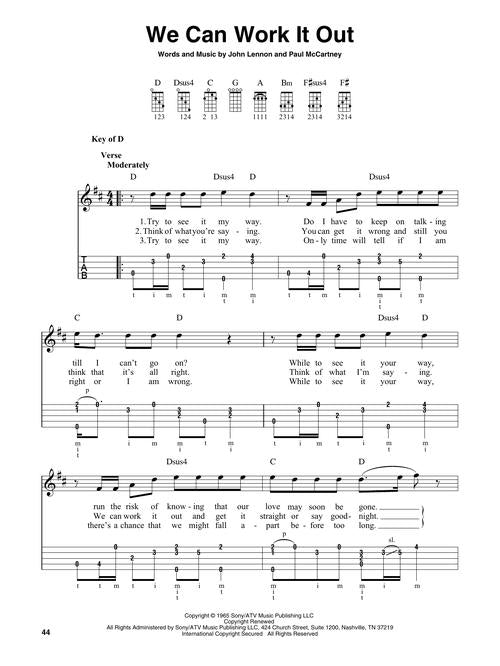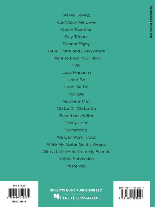 Artist: The Beatles The Beatles Banjo Tab Softcover 22 favorites from the fab four arranged for 5-string banjo in notes and tab, including: All My Loving · Can't Buy Me Love · Come Together · Day...Regular price $29.99 -