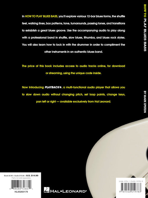 Author: Mark Epstein How to Play Blues Bass Learn, Create and Apply Your Own Blues Bass Lines Publisher: CHERRY LANE MUSIC Category: Guitar, Bass & Fretted Series: Bass Instruction Format: Softcover Audio Online Guitar Tab: YES...Regular price $17.99 -
