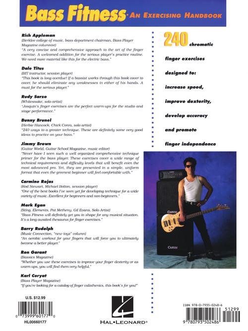 Author: Josquin des Pres Bass Fitness - An Exercising Handbook: Updated Edition! Now Including Bonus 5-String Section! Publisher: Hal Leonard Category: Guitar, Bass & Fretted Series: Guitar School Format: Softcover Guitar Tab: YES The purpose of...Regular price $20.99 -