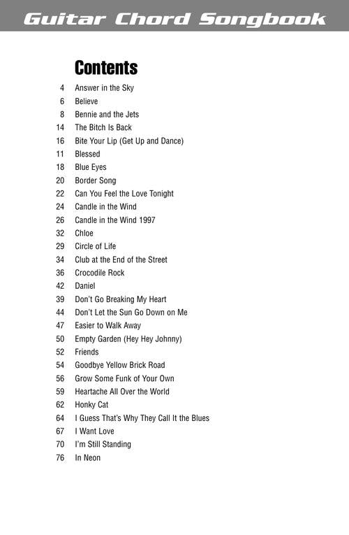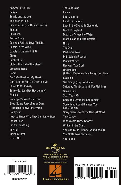 Artist: Elton JohnElton JohnGuitar Chord SongbookPublisher: Hal LeonardCategory: Guitar, Bass & FrettedSeries: Guitar Chord SongbookFormat: SoftcoverThis book contains just what you need to strum and sing 60 of your favorite Elton John songs, including: Bennie and...Regular price $29.99 -