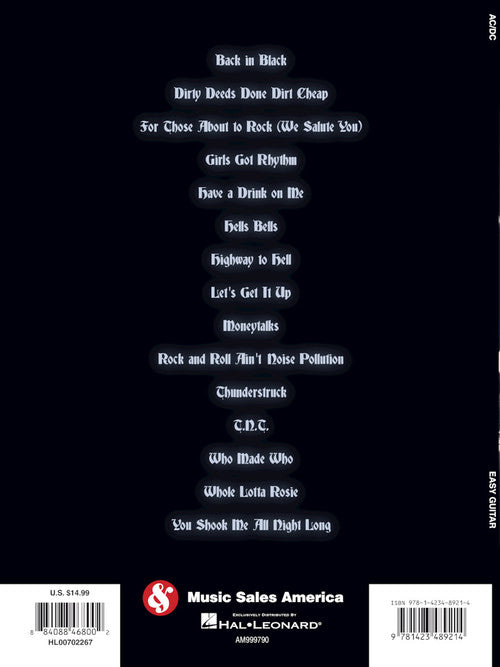 AC/DCEasy Guitar with Riffs and SolosPublisher: Music Sales AmericaCategory: Guitar, Bass & FrettedSeries: Easy GuitarFormat: SoftcoverGuitar Tab: YES15 rock classics arranged for beginning guitarists, including: Back in Black · Dirty Deeds Done Dirt Cheap · For...Regular price $27.99 -