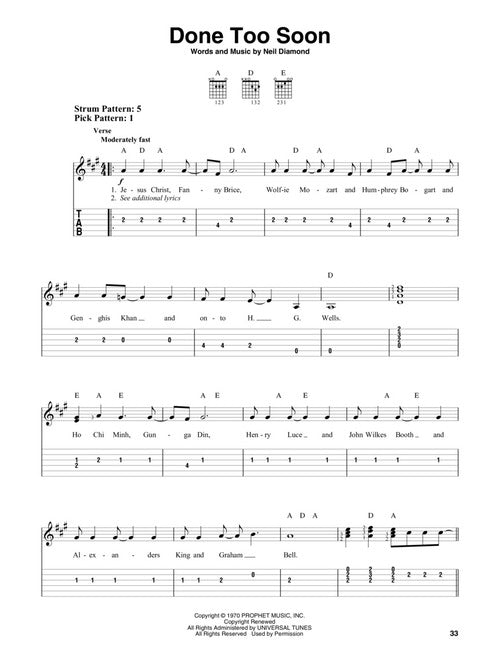 Neil Diamond Anthology - Second EditionPublisher: Hal LeonardCategory: Guitar, Bass & FrettedSeries: Easy GuitarFormat: SoftcoverGuitar Tab: YES35 of Diamond's most memorable songs are included in this second edition featuring easy guitar arrangements with notes and tab....Regular price $27.99 -