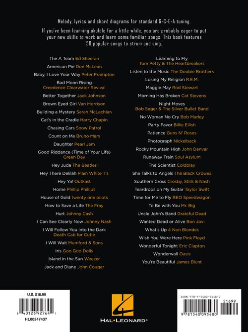 Artist: VariousFirst 50 Songs You Should Strum on UkulelePublisher: Hal LeonardCategory: Guitar, Bass & FrettedSeries: UkuleleFormat: SoftcoverAn amazing collection of 50 accessible, must-know favorites for the beginner who's learned enough to feel ready to step into...Regular price $23.99