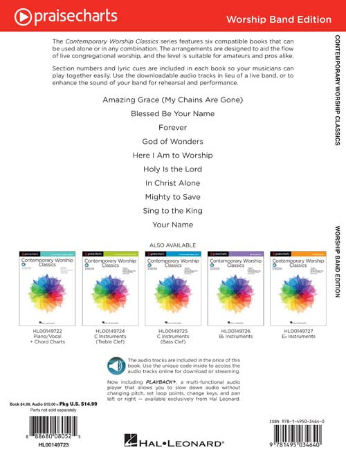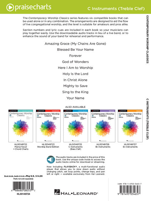 Contemporary Worship ClassicsPraiseCharts Series C Treble Instruments Melody + PartPublisher: Hal LeonardCategory: Guitar, Bass & FrettedSeries: Praise ChartFormat: Softcover Audio OnlineThe PraiseCharts series features six compatible books that can be used alone or in any combination....Regular price $17.99 -