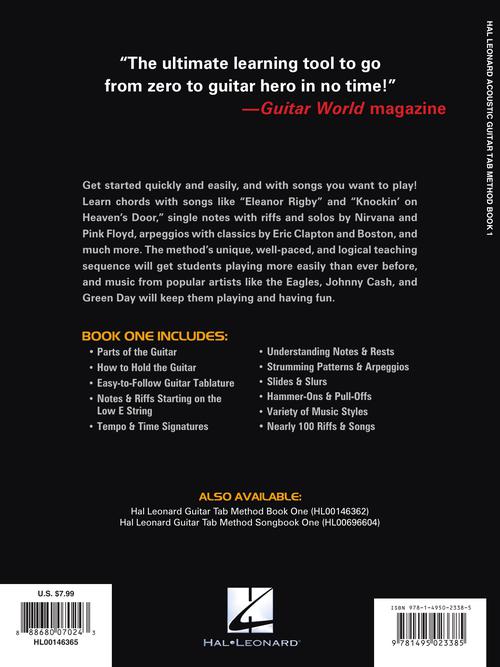 Hal Leonard Acoustic Guitar Tab Method - Book 1Book OnlyPublisher: Hal LeonardCategory: Guitar, Bass & FrettedSeries: Guitar Tab MethodFormat: SoftcoverGuitar Tab: YESThis is the acoustic guitar method students and teachers have been waiting for. Learn chords...Regular price $11.99 -
