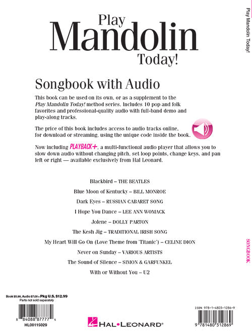 Play Mandolin Today! SongbookPublisher: Hal LeonardCategory: Guitar, Bass & FrettedSeries: Play Today Instructional SeriesFormat: Softcover Audio OnlinePerfect for use on its own or as a supplement to the Play Mandolin Today! method, this book/audio package features...Regular price $15.99 -