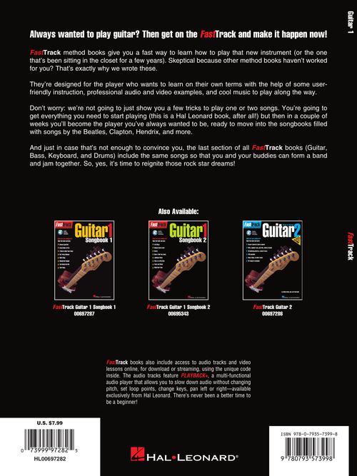 FastTrack Guitar Method - Book 1Publisher: Hal LeonardCategory: Guitar, Bass & FrettedSeries: Fast Track Music InstructionFormat: Softcover Audio OnlineGuitar Tab: YESFor electric or acoustic guitar - or both! Teaches music notation, tablature, Full chords and power...Regular price $11.99 -