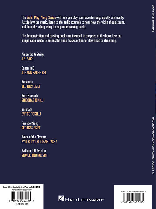 Light Masterworks Violin Play Along Volume 47 Softcover Audio Online