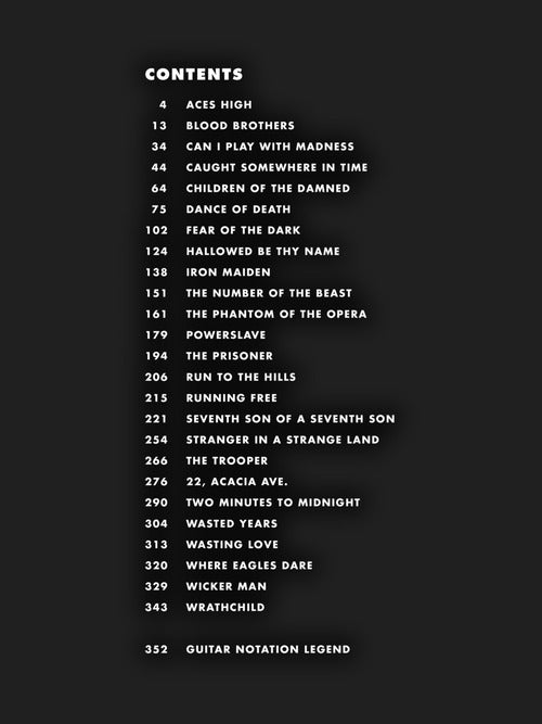 Iron Maiden - Guitar Tab25 Metal MasterpiecesPublisher: Hal LeonardCategory: Guitar, Bass & FrettedSeries: Guitar Recorded VersionFormat: SoftcoverGuitar Tab: YES25 authentic transcriptions with notes and tablature from the extensive career of these British metal masters that first...Regular price $47.99