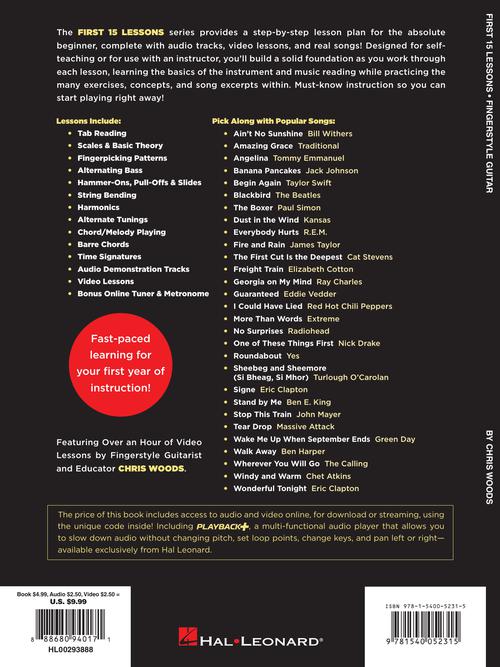 Author: Chris Woods First 15 Lessons - Fingerstyle Guitar Publisher: Hal Leonard Category: Guitar, Bass & Fretted Series: Guitar Educational Format: Softcover Media Online The First 15 Lessons series provides a step-by-step lesson plan for the...Regular price $11.99 -
