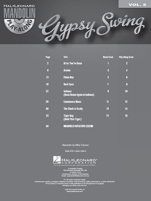 Gypsy Swing Mandolin Play Along Volume 5 Softcover With Cd