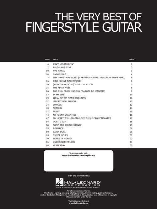 Composer: Various The Very Best of Fingerstyle Guitar 25 Songs Arranged for Solo Guitar in Standard Notation and Tablature Publisher: Hal Leonard Category: Guitar, Bass & Fretted Series: Guitar Solo Format: Softcover Audio Online Guitar Tab:...Regular price $23.99 -
