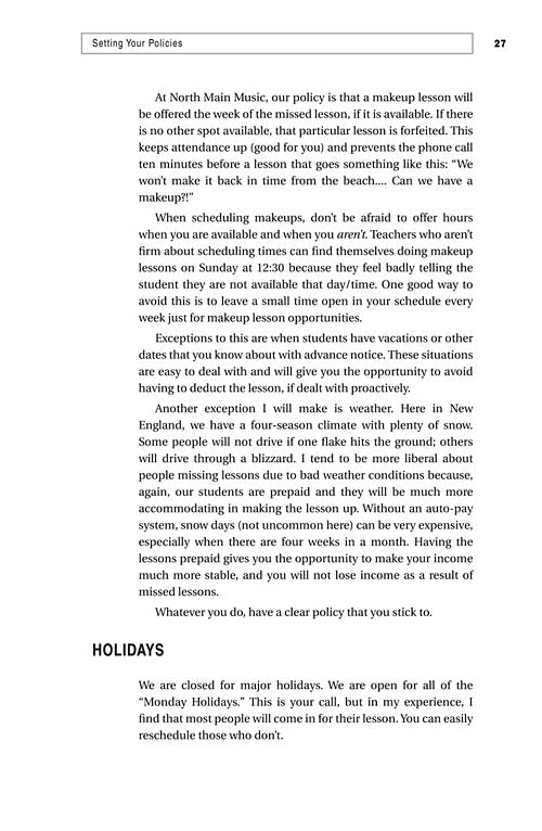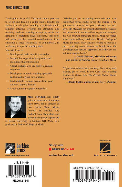 The Private Guitar Studio Handbook Strategies and Policies for a Profitable Music Business Softcover Teach guitar for profit! This book will show you how to set up and develop a profitable guitar studio. Besides the ability...Regular price $17.99 -
