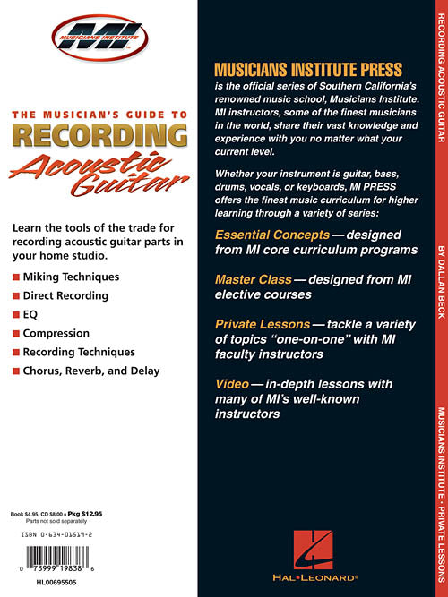 The Musician's Guide to Recording Acoustic Guitar Private Lessons Series Publisher: Musicians Institute Press Category: Guitar, Bass & Fretted Series: Musicians Institute Press Format: Softcover with CD Learn the tools of the trade for recording acoustic...Regular price $16.99 -