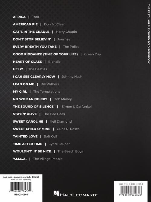 Artist: Various The Easy Ukulele Chord Solo Songbook 20 All-Time Pop Favorites Arranged for Solo Ukulele Publisher: Hal Leonard Category: Guitar, Bass & Fretted Series: Ukulele Format: Softcover Audio Online Guitar Tab: YES Beginning ukulele players...Regular price $23.99 -