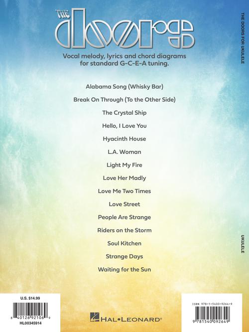 Artist: The Doors The Doors for Ukulele Publisher: Hal Leonard Category: Guitar, Bass & Fretted Series: Ukulele Format: Softcover Now you can strum along to 15 Doors classics on the ukulele! This songbook with arrangements in...Regular price $17.99 -