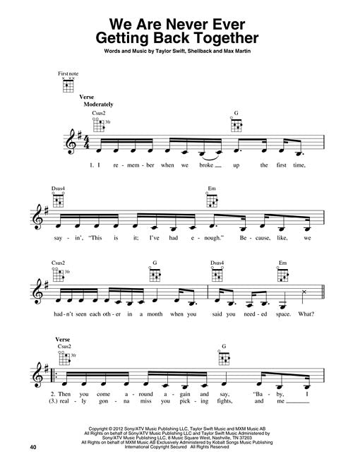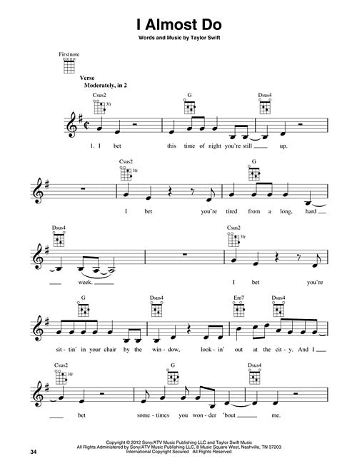 Artist: Taylor Swift Taylor Swift - Red Softcover All 16 songs from Swift's 2012 blockbuster arranged specifically for the uke. Includes: Begin Again · Everything Has Changed · The Last Time · Red · State of...Regular price $20.99 -