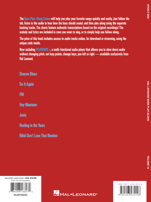 Steely Dan Bass Play-Along Volume 19 Publisher: Hal Leonard Category: Guitar, Bass & Fretted Series: Bass Play-Along Format: Softcover Audio Online Guitar Tab: YES The Bass Play-Along series will help you play your favorite songs quickly...Regular price $29.99
