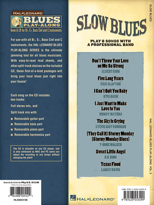 Slow Blues Blues Play-Along Volume 3 Publisher: Hal Leonard Category: Guitar, Bass & Fretted Series: Blues Play-Along Format: Softcover with CD For use with all C, Bb, Eb, and Bass Clef instruments, the Hal Leonard Blues...Regular price $15.99 -