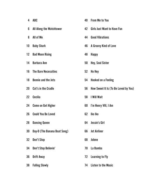 Composer: Various Simple Songs for Ukulele The Easiest Tunes to Strum & Sing on Ukulele Softcover 50 favorites for standard G-C-E-A ukulele tuning, including: All Along the Watchtower · Burning House · Can't Help Falling in...Regular price $21.99 -