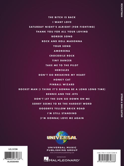 Artist: Elton John Rocketman - Strum & Sing Series for Guitar Music from the Motion Picture Soundtrack Publisher: Hal Leonard Category: Guitar, Bass & Fretted Series: Strum & Sing Guitar Format: Softcover Celebrate the fantastic songs...Regular price $21.99 -