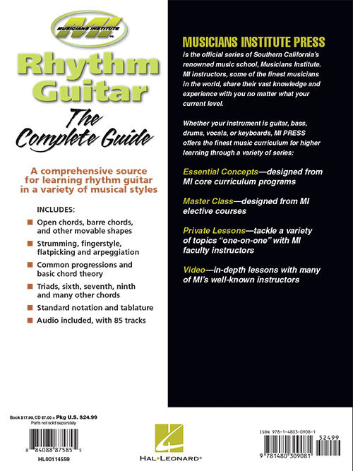 Composer: Bruce Buckingham Rhythm Guitar Essential Concepts Series Softcover Audio Online A comprehensive source for learning rhythm guitar in a variety of musical styles. It covers: open chords, barre chords, and other movable shapes; strumming, fingerstyle,...Regular price $35.99 -