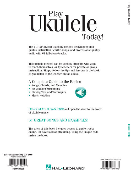 Author: Barrett Tagliarino Play Ukulele Today! A Complete Guide to the Basics Level 1 Publisher: Hal Leonard Category: Guitar, Bass & Fretted Series: Play Today Instructional Series Format: Softcover Audio Online This is the ultimate self-teaching...Regular price $15.99 -