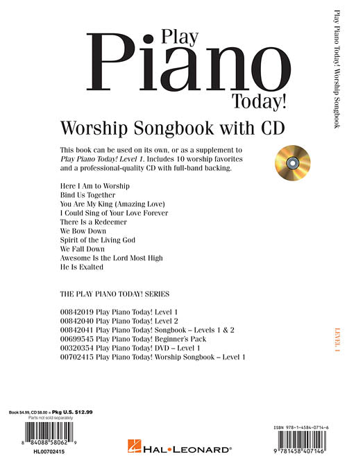 Artist: Various Play Piano Today! - Worship Songbook Publisher: Hal Leonard Category: Guitar, Bass & Fretted Series: Play Today Instructional Series Format: Softcover with CD This songbook can be used on its own, or as a...Regular price $15.99 -