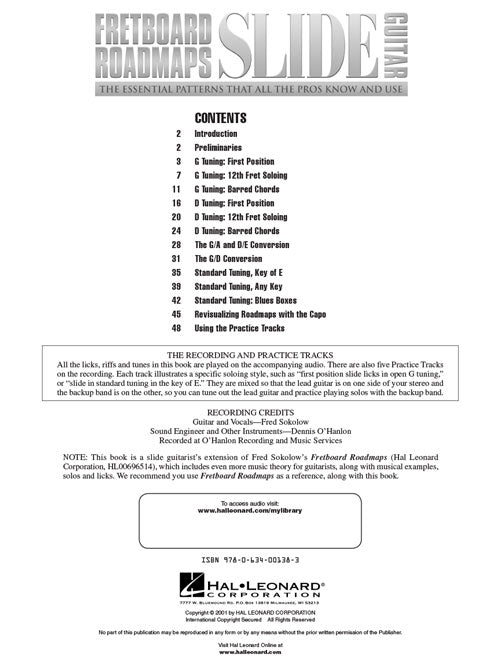 Fretboard Roadmaps - Slide Guitar The Essential Patterns That All the Pros Know and Use Publisher: Hal Leonard Category: Guitar, Bass & Fretted Series: Guitar Format: Softcover Audio Online Guitar Tab: YES A must for every...Regular price $21.99 -