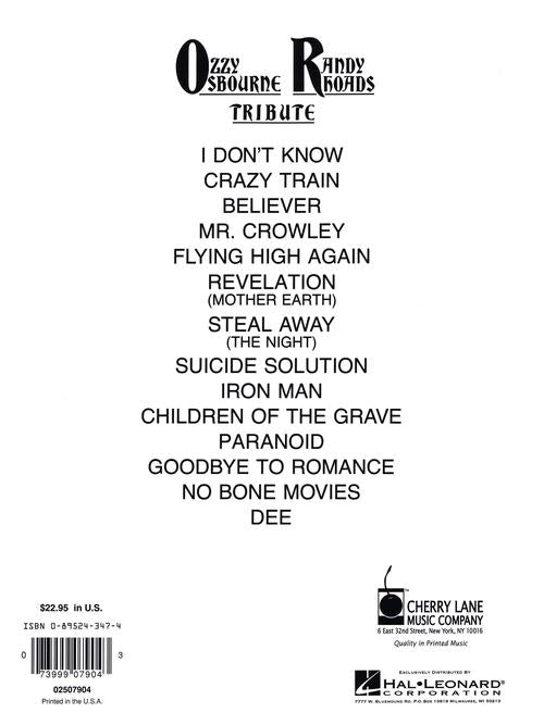 Artist: Ozzy Osbourne Ozzy Osbourne - Randy Rhoads Tribute Publisher: Cherry Lane Music Category: Guitar, Bass & Fretted Series: Play It Like It Is Format: Paperback Guitar Tab: YES Matching folio to the sensational live album,...Regular price $32.99 -