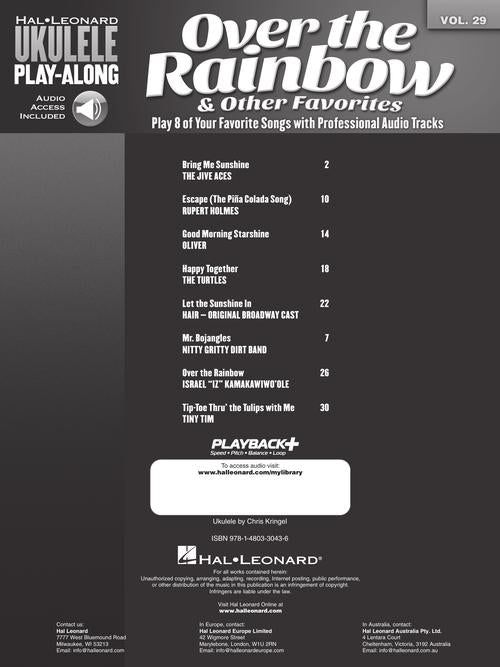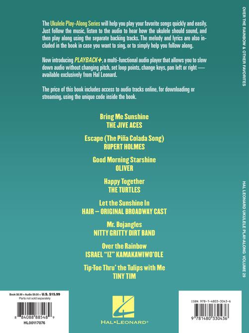 Over the Rainbow & Other Favorites Ukulele Play-Along Volume 29 Publisher: Hal Leonard Category: Guitar, Bass & Fretted Series: Ukulele Play-Along Format: Softcover Audio Online The Ukulele Play-Along series will help you play your favorite songs...Regular price $19.99 -
