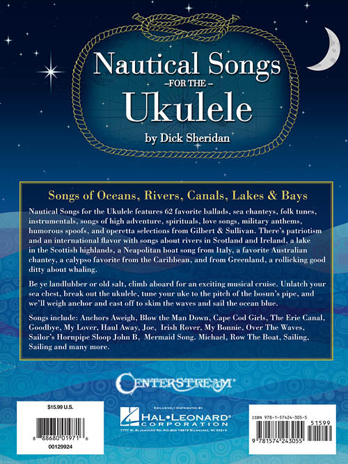 Nautical Songs for the Ukulele Publisher: Centerstream Publications Category: Guitar, Bass & Fretted Series: Fretted Format: Softcover Climb aboard for an exciting musical cruise - unlatch your sea chest, break out the ukulele, and cast off...Regular price $19.99 -