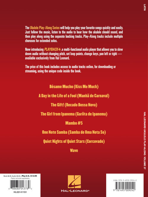 Latin Ukulele Play-Along Volume 37 Publisher: Hal Leonard Category: Guitar, Bass & Fretted Series: Ukulele Play-Along Format: Softcover Audio Online The Ukulele Play-Along series will help you play your favorite songs quickly and easily, with incredible...Regular price $17.99 -