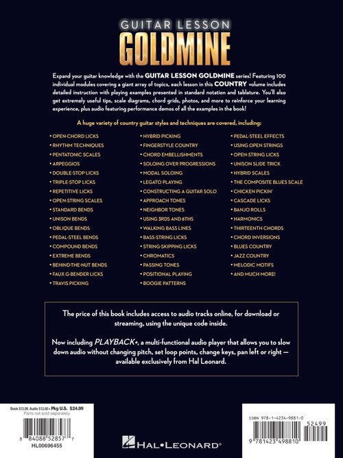 100 Country LessonsGuitar Lesson Goldmine SeriesPublisher: Hal LeonardCategory: Guitar, Bass & FrettedSeries: Guitar EducationalFormat: Softcover Audio OnlineGuitar Tab: YESExpand your guitar knowledge with the Guitar Lesson Goldmine series! Featuring 100 individual modules covering a giant array...Regular price $29.99