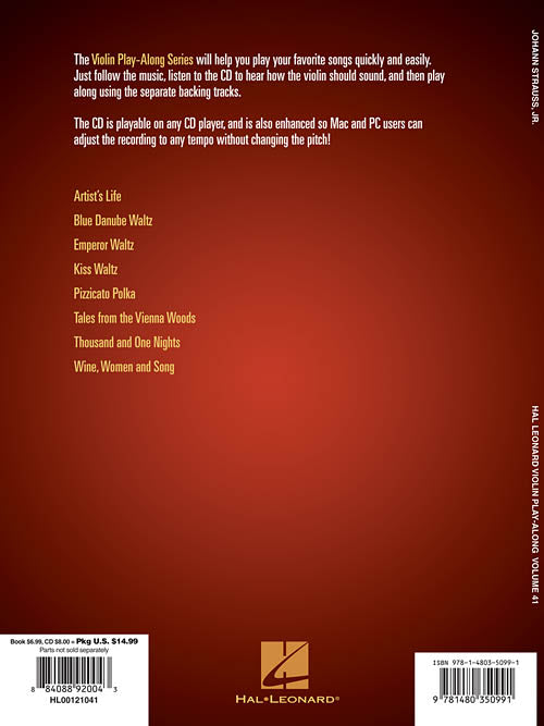 Johann Strauss Violin Play-Along Volume 41 Publisher: Hal Leonard Category: Guitar, Bass & Fretted Series: Violin Play-Along Format: Softcover with CD The Violin Play-Along Series will help you play your favorite songs quickly and easily. Just...Regular price $17.99 -