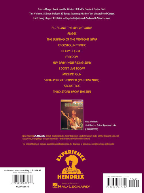 Artist: Jimi Hendrix Jimi Hendrix - Volume 2 A Step-by-Step Breakdown of His Guitar Styles and Techniques Publisher: Hal Leonard Category: Guitar, Bass & Fretted Series: Signature Licks Guitar Format: Softcover Audio Online Guitar Tab: YES...Regular price $35.99 -