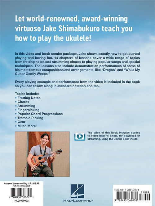 Jake Shimabukuro Teaches Ukulele Lessons Book with Full-Length Online Video Publisher: Hal Leonard Category: Guitar, Bass & Fretted Series: Ukulele Format: Softcover Video Online Learn notes, chords, songs, and playing techniques from the master of modern...Regular price $27.99 -