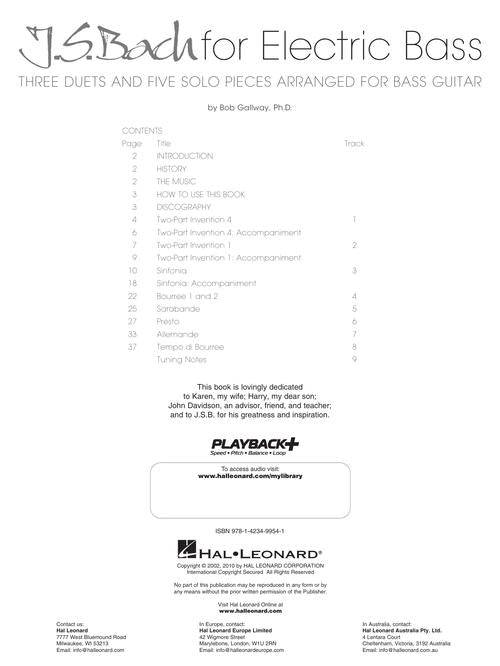 Composer: Johann Sebastian Bach J.S. Bach for Electric Bass Music · Instruction · Historical Analysis Publisher: Hal Leonard Category: Guitar, Bass & Fretted Series: Bass Instruction Format: Softcover Audio Online Guitar Tab: YES Now available with...Regular price $17.99 -