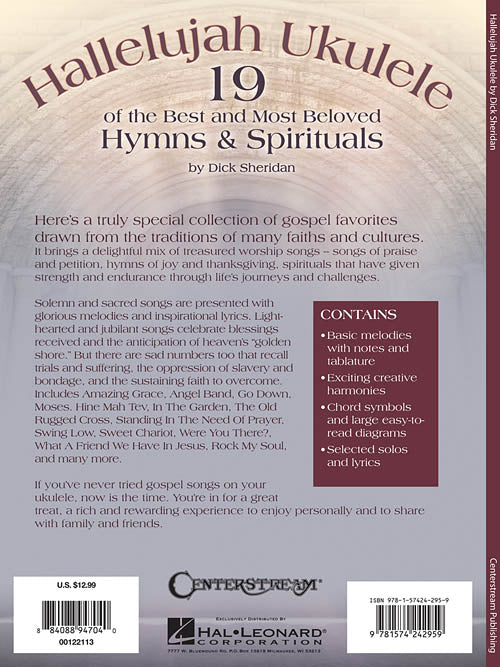 Hallelujah Ukulele 19 of the Best and Most Beloved Hymns & Spirituals Publisher: Centerstream Publications Category: Guitar, Bass & Fretted Series: Fretted Format: Softcover Guitar Tab: YES Here's a truly special collection of gospel favorites drawn...Regular price $15.99