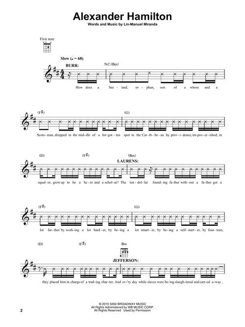 Composer: Lin-Manuel Miranda Hamilton Ukulele Selections Softcover If you've been waiting for your shot to play the great tunes from Hamilton on ukulele, here you go. 10 selections with melody, lyrics, and chord diagrams for standard...Regular price $21.99 -