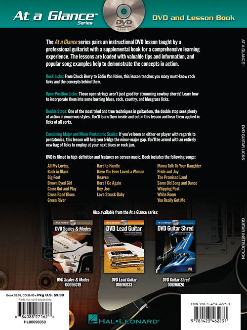Author: Various Authors Guitar Licks Publisher: Hal Leonard Category: Guitar, Bass & Fretted Series: At a Glance Format: Softcover with DVD Guitar Tab: YES The At a Glance series pairs an instructional DVD lesson taught by...Regular price $11.99 -