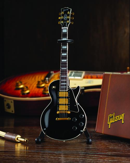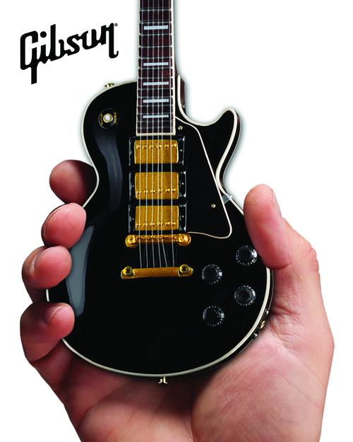 Gibson Les Paul Custom Ebony Mini Guitar Replica Publisher: Axe Heaven Category: Guitar, Bass & Fretted Series: Axe Heaven Guitars Format: Gift Item These miniature replica model guitars are officially licensed to commemorate iconic Gibson(TM) instruments....Regular price $59.99 -